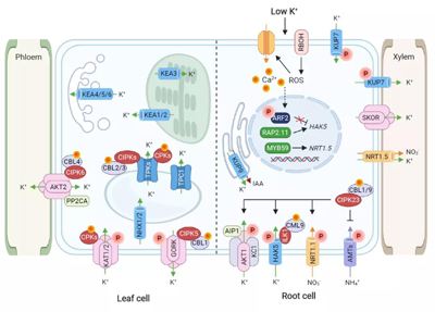 近日中國農(nóng)業(yè)大學武維華院士團隊題為"Potassium and phosphorus transport and signaling in plants"的綜述論文。該論文以擬南芥和水稻為例,系統(tǒng)歸納了植物、作物吸收、運輸鉀和磷的分子調(diào)控機制,以及植物/作物感受和應答低鉀、低磷逆境脅迫的信號轉(zhuǎn)導機制。此外,論文還討論了氮、磷、鉀養(yǎng)分之間的互作關系,及其協(xié)同吸收、運輸?shù)姆肿訖C理。