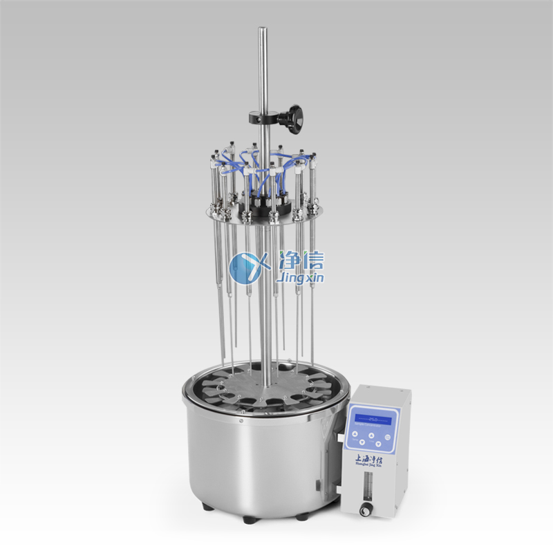 SD-12水浴氮吹儀采用微電腦控制技術(shù)和PID控制方式結(jié)合而成的高精密度控制儀器,其工作原理是將氮氣快速、連續(xù)、可控的地吹到加熱樣品表面,根據(jù)被濃縮溶劑的蒸發(fā)速度和沸點、設(shè)定加熱溫度,實現(xiàn)大量樣品的快速無氧濃縮。水浴氮吹儀包括底座和支架裝置、樣品架和氣體分配系統(tǒng)。試管通過帶彈簧的試管夾和支撐盤來固定位置。每個樣品位都有數(shù)字編號;氣體通過流量計到達氣體分配系統(tǒng),靈活的引導(dǎo)管將氣體導(dǎo)入每個位置的閥和不銹鋼針,將氣體吹至樣品表面,從而使溶劑快速揮發(fā)。根據(jù)試管大小和溶劑多少,各導(dǎo)氣管可獨立升降至合適的高度。