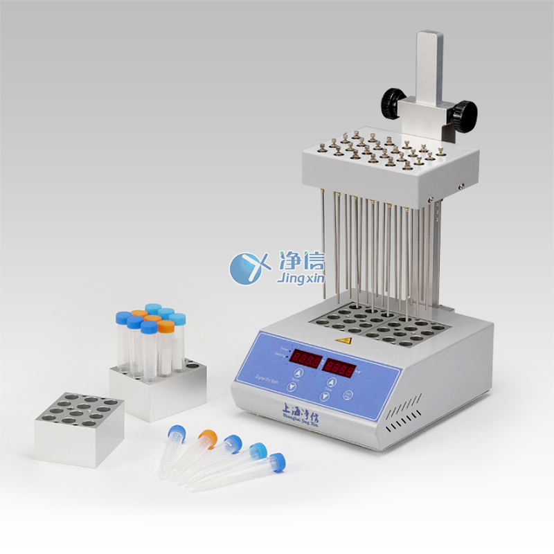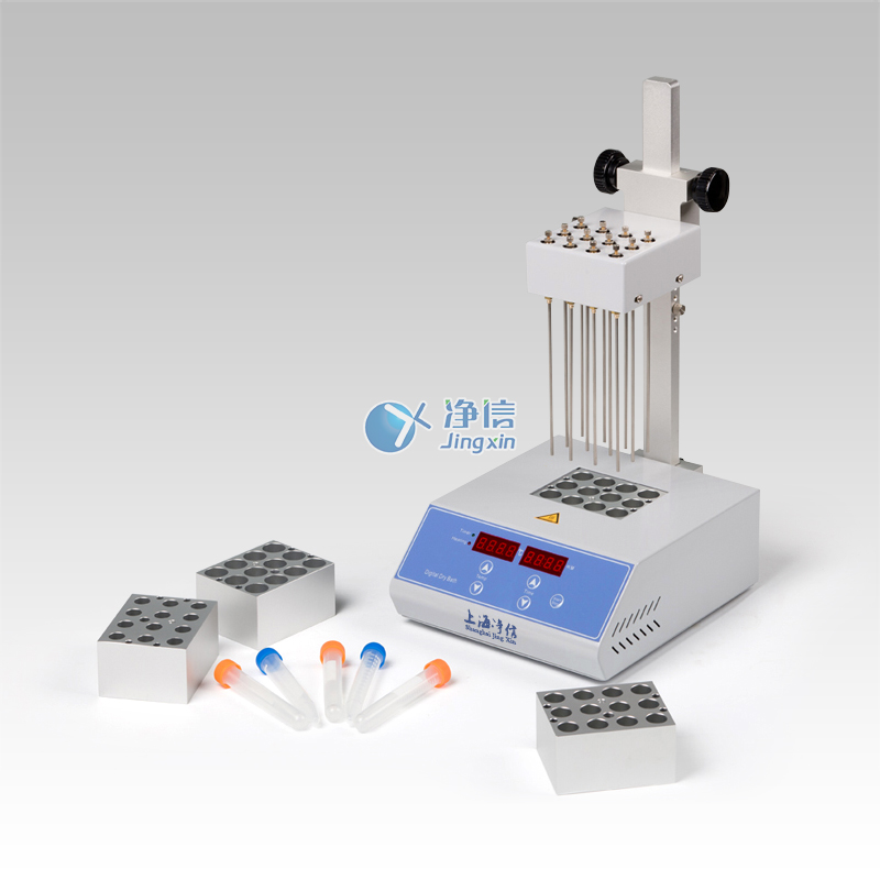 JXDC-200系列氮氣吹掃儀是采用微電腦處理和PID控制方式結合而形成的高精度溫度控制儀器,其工作原理是將氮氣快速、連續、可控地吹到加熱樣品表面,根據被濃縮溶劑的蒸發速度和沸點,設定加熱溫度,實現大量樣品的快速濃縮。