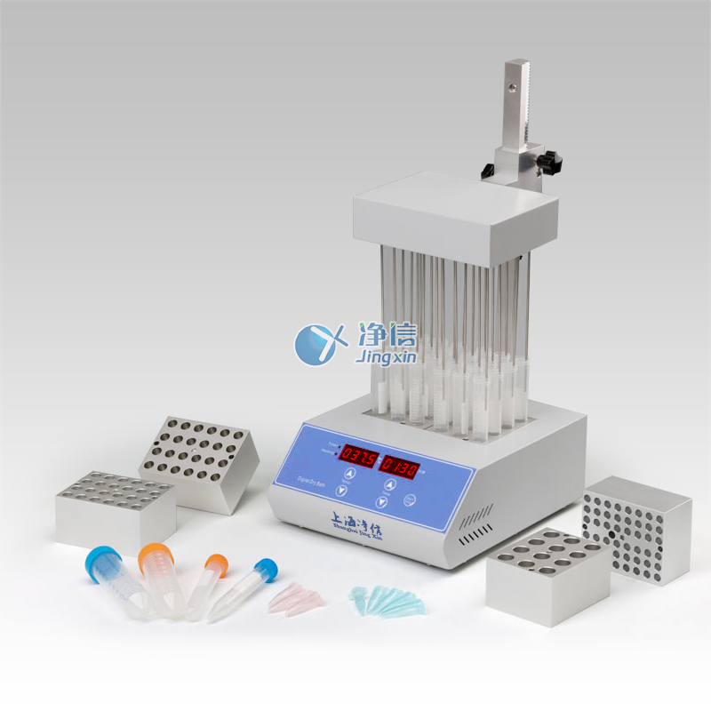 JXDC-20氮氣吹掃儀采用微電腦和PID模糊控制技術,利用高純度鋁材料做為導熱介質,以代替傳統的水浴裝置,具有使用方便、控溫范圍大、精度高等特點。其工作原理是將氮氣或空氣快速、連續、可控地吹到加熱樣品表面,并根據被濃縮溶劑的蒸發速度和沸點,設定加熱溫度,實現大量樣品的快速濃縮。