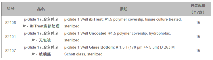 l也可提供玻璃底的載玻片: μ-Slide 1 Well?Glass Bottom 適用于特殊顯微鏡應用